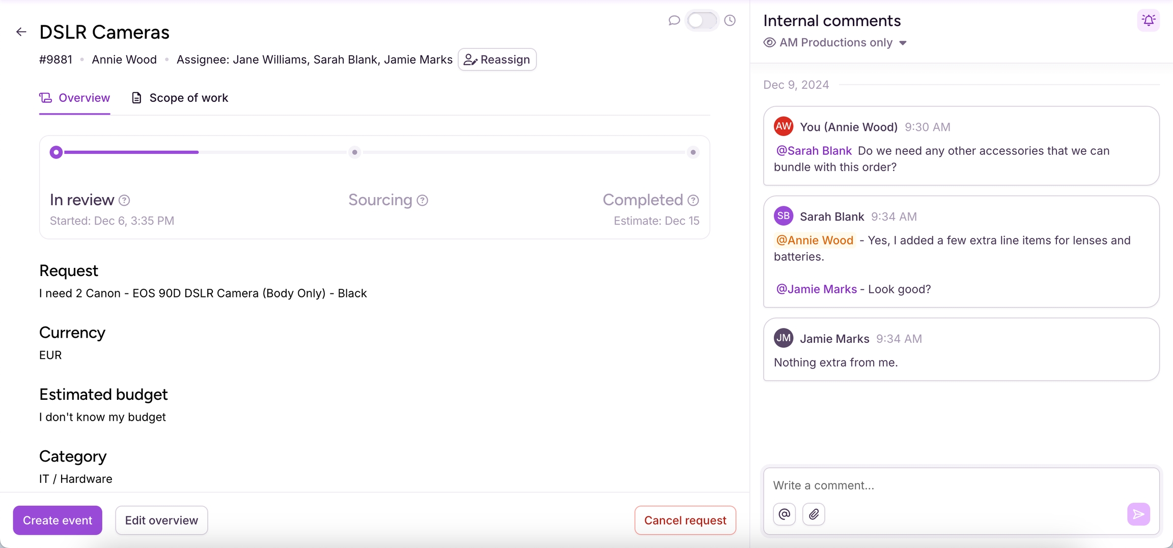 If an intake request is no longer needed and shouldn't be made into an event, you can cancel it. Once a request is canceled, it cannot be reopened, but you can still view the request details.